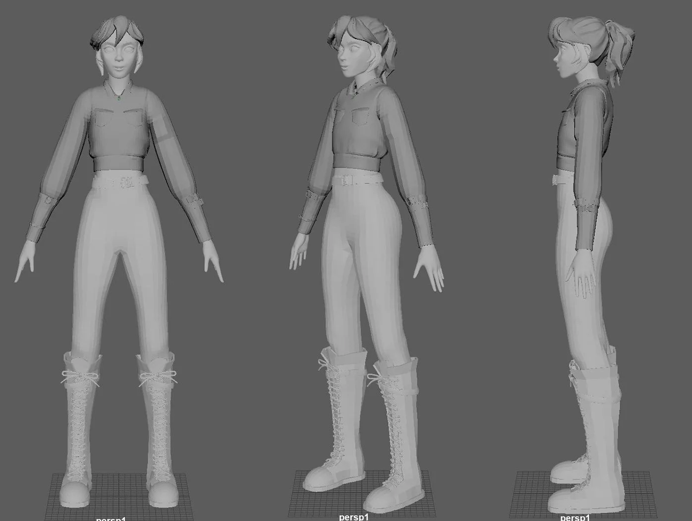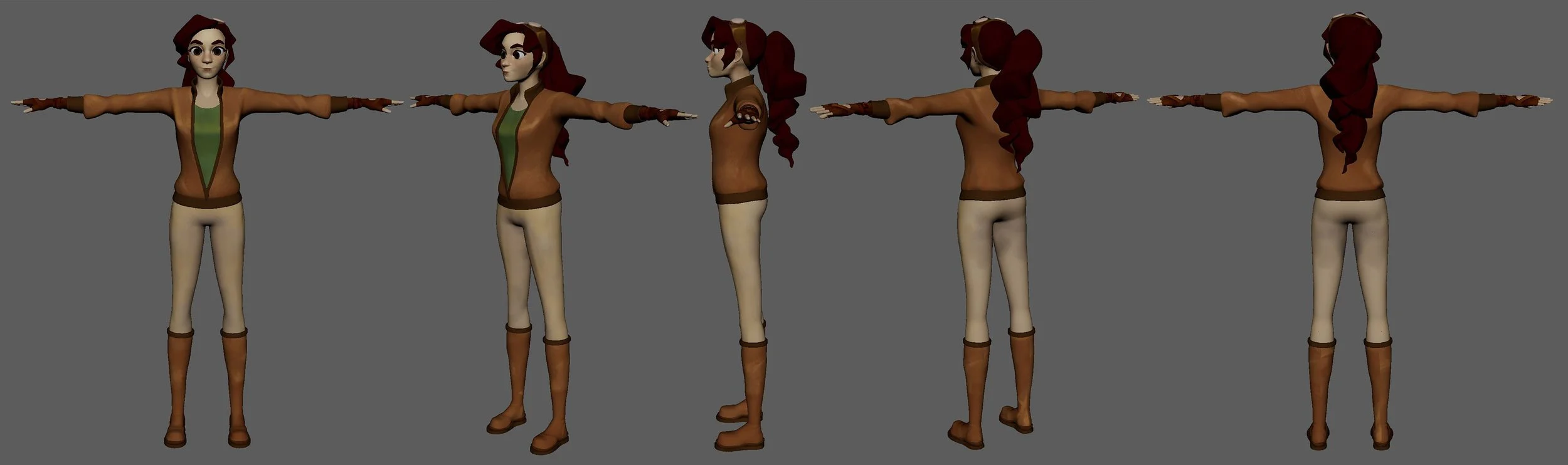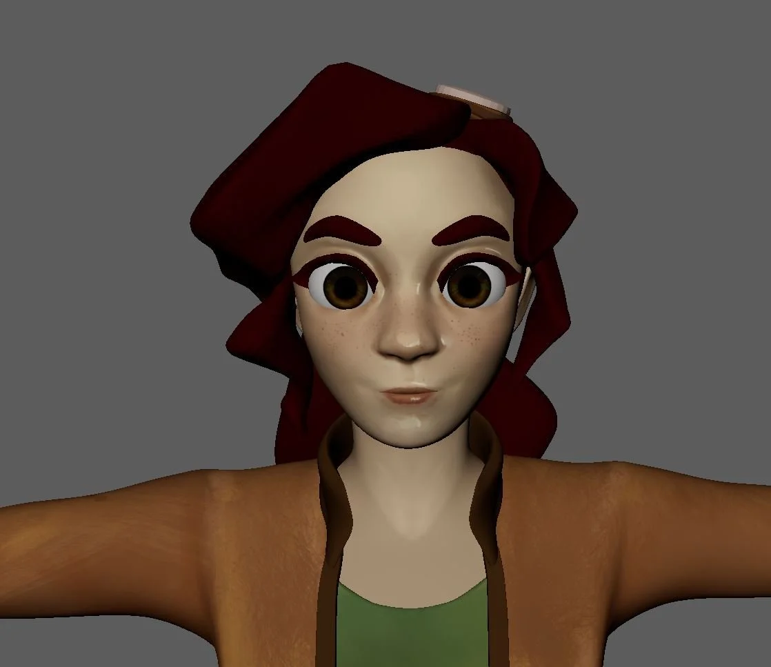 This First Rig Was my first major stepping stone for making the film. Using Zbrush, I modeled the body face boots and hair. I learned how to sew clothes in Marvelous designer. and Retopologized the Face body and clothes in Maya. I learned how to use advance skeleton to create a rig for my character that could help me create large motor movements as well as facial animation.